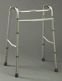 - Single release folding mechanism aids user with limited hand dexterity to fold walker. H-frame design eases over-toilet positioning. Strong, 1" aluminum tubing is durable and non-corrosive. Available in two grip styles. 300 lb. weight bearing capacity. Size: Junior. Approximate user height: 4'7"-5'3".