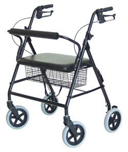 - Bariatric Walkabout Imperial Four-Wheel Aluminum Rollator, Contoured Backrest, Burgundy. Picture shown is Straight Backrest and Black in color. The Walkabout Imperial rollator is ideal for the bariatric user, featuring a 20"-wide seat and maximum weight capacity of 500 lbs. It has the same great features as the Walkabout Lite, and folds quickly and easily into a compact unit for storage or transport. Its features include a padded seat, a backrest for extra comfort, ergonomic hand grips, and easy-to-operate hand brakes. Epoxy-coated aluminum frame. Locking loop brakes. Removable wire storage basket. Adjustable handle height. Heavy-duty 8" wheels for indoor or outdoor use. Designed to meet the requirements of HCPCS codes: E0149 + E0156. Includes laminated color operating instructions. Limited lifetime warranty.