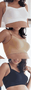 - Seamless Comfort Line Maternity Bra: For the woman in you, the Medela seamless bra provides a smooth, natural line under everyday tee shirts_or an elegant blouse. The molded stretch cup features a delicate lacy pattern woven right into the fabric. It is this unique fabric that is key to how the bra comfortably accommodates fluctuating breast size, while maintaining cool comfort and flexibility. The specially designed two-piece cup features a unique one-hand outer cup release that opens easily to breastfeed baby. This same cup design also provides strong but gentle support to mothers-in-waiting. Size: XLarge, Color: Nude.