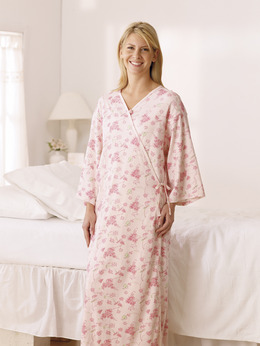 - This Feels Like Home® pink floral knit gown can be used for nursing mothers.