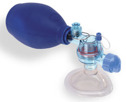 - Self-Inflating Child CPR Hand Resuscitation Bag with CUSHION MASK, AEROSOL RESERVOIR, PEEP Adapter, POP-OFF, and LOCK CLIP. Features: Translucent single-unit patient valve construction. Low resistance, one-way duckbill valve built close to patient port. Soft rubber construction. Built-in adapter port. Optional reservoir bag or flexible tubing reservoir system is available for higher oxygen concentrations. Assembled with 10' oxygen tubing. 360 patient swivel connection. No assembly necessary. Single-patient use.