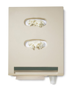 - Midmark 662 Towel, Glove & Cup Dispenser. Color: Blueberry. The Midmark 662 is the convenient solution to your sanitary needs. It holds two standard or large size boxes of gloves and standard size "C" or "Z" paper towels. The cup dispenser holds standard 5-oz. paper or plastic cups. The dispenser comes in Pebble Grey with insert colors available in standard Midmark colors, and measures 21" H x 5.9" D x 17" W.