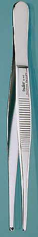 Tissue Forceps 1 X 2 teeth, standard pattern serrated handles, 8" (20.3 cm).
