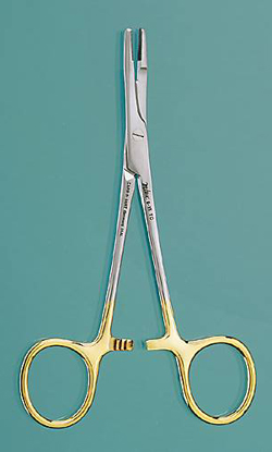 OLSEN-HEGAR Needle Holder with Suture Scissors, 6 1/2 in. (16.5 cm), serrated jaws, 2600 teeth p. sq. inch.