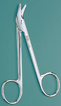 MILTEX Wire Cutting Scissors, 4 3/4 in. (12.1 cm), angled to side, one serrated blade.