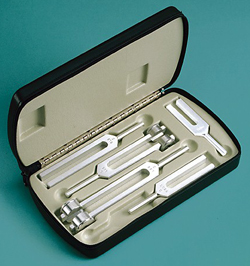 MILTEX Tuning Forks, Aluminum Alloy, Set of 5 Tuning Forks, C-128, C-256, C-512, C-1024 and C-2048 in fitted molded vinyl zippered case.