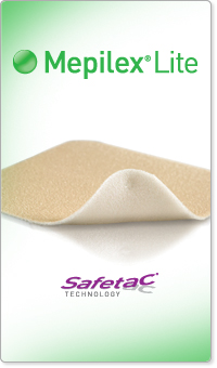 Mepilex Lite is a soft and highly conformable foam dressing that absorbs wound fluid (exudate) but keeps your wound sufficiently moist.Mepilex Lite is a thinner version of Mepilex. The unique and patented Safetac® adhesive makes sure that your dressing can be changed without damaging your wound or skin around it. This makes the dressing change as pain free as possible and also makes sure that the skin around your wound stays dry and healthy. If you want to learn more about Safetac click here.