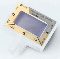 - CO2 Detectors, Easy Cap II. Reliable carbon dioxide detectors help verify endotracheal tube placement. Responds quickly to exhaled CO2 with a simple color change from purple to yellow. Breath-to-breath response. Constant visual feedback for up to 2 hours. Single patient use to verify endotracheal tube placement. Recommended patient size: Weight over 15kg. Internal volume (dead space): 25cc. Resistance to flow: 3.0cm H20 +/-1.0cm @ 60L/min flow. Connector ports: Patient end 22mm OD/15mm ID, Circuit end 15mm OD/13mm ID. Usage time: Up to 2 hours.