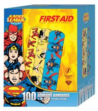 - Justice League Adhesive Bandage featuring Superwoman, Wonderwoman & Flash.