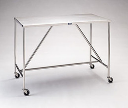 - Large Instrument Table without Shelf. Size: 24" W x 60" L x 34" H. Stainless steel Steril-Gard construction eliminates full sub-tops where undesirable substances can collect. Lightweight but strong. Attractive design. Easy to clean. Soundproofed reinforcing channels for quiet use. 3" rubber double ball bearing casters for silent mobility.