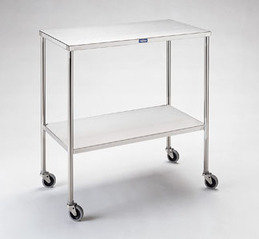 - Mid-Size Instrument Table with Shelf. Size: 16" W x 30" L x 34" H. Stainless steel Steril-Gard construction eliminates full sub-tops where undesirable substances can collect. Lightweight but strong. Attractive design. Easy to clean. Soundproofed reinforcing channels for quiet use. 3" rubber double ball bearing casters for silent mobility.