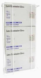 Economy Triple Wire Glove Box Holder holds three glove boxes. Omn Glove Box Holder accepts one box horizontally or two boxes vertically. Size: 11x16x4.