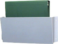 - Wall Pockets - Promote "Point of Care" convenience. Can be mounted on wall, door, bed end or file cabinet. Easily attached with pressure sensitive tape (supplied) or screws (not included). Easy access for records to be filed or used. Tapered to 1" at bottom. Aluminum, 14"W x 7"H.