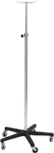 - Heavy Weight Infusion Stand - The heavy-duty column and weighted five-leg base provide stability and holds up to four 5000 ml containers. It raises to a maximum height of nine feet. Unique "Air-Glide System" controls decent of pole when unlocked. Cast aluminum lock securely holds at the desired height.