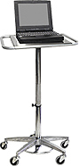 - Laptop Transport Stand - The large tray features dual handles for transport and height adjustment for standing or seated use. Simply depress the foot ring to adjust the surface height from 35" to 45". Star leg base and 3" rubber casters provide a smooth, quiet ride.