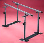 - 7' Adult Side-Folding Parallel Bars. Store them away when not in use. Height adjusts 22" to 36". Width adjusts 14" to 24". Handrail size 1-5/8". Knobs securely lock bars in place when in use. Latex free.