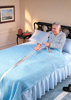 - This ladder pull-up has four 12" rungs spaced for easy hand/arm placement so that a person can pull himself up from bed. Has a 85" webbing to fit around bed frame. Hook and loop wrap reinforces the buckle that attaches webbing to ladder. Latex free.