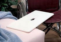 - Made of dureable, high-density polyethylene plastic. Transfer board has a striated surface, making it ideal for bare skin transfers. Opposite side remains smooth for clothed transfers. Has curved ends and a center slot for carrying. Supports up to 350 lbs. Measures: 10" x 26" x 1/2". Latex free.