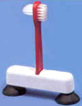 Suction Denture Brush. Base molded of high-impact styrene. Two strong suction cups firmly hold brush for one-handed cleaning of dentures. Easy to clean. Latex free.