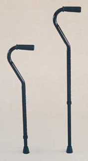 - Bariatric Offset Handle Adjustable Cane. Heavy duty cane has 500 lb weight capacity. Vinyl hand grip on sturdy 1" steel tubing with Tuff Coat black powder coating. Double push button adjustment allows height adjustments 28" to 36" in 1" increments. Weighs 2 lbs.