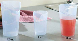 - Nosey Cutout Tumbler, 4 oz. Nosey Cutout Tumblers Help Maintain Proper Positioning When Swallowing. These cups have been redesigned for added comfort and convenience. A special cutout helps to maintain the proper head and neck positioning when swallowing, making drinking even easier. Each tumbler is now transparent which enables at-a-glance monitoring of liquid intake. Durable polypropylene makes these tumblers dishwasher safe - up to 228-degree F. Latex free.