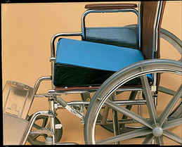 - Economy Wedge Cushion without strap. Vinyl-covered polyurethane foam cushion can be positioned with the high end in front to prevent the user from sliding forward, or in the back for those who have difficulty rising. The 16-1/2"-square cushion slopes from 4-1/2" to 3/4", and can also be used to provide comfort in the car or at home. Optional hook and loop strap secures cushion to the wheelchair to prevent slipping. Latex free.