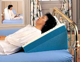 - Dual-Position Comfort Wedge. 2-in-1 Positioning Wedge. Use in the upright position for supported sitting while in bed, or as an elevated cushion while sleeping. It elevated and supports the head, neck, shoulders and back to relieve respiratory discomfort and ease breathing. Includes washable cover. Measures 22" x 24" x 16".