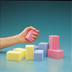 - Rolyan R-Lite Foam Blocks, 12/st. 4 blocks of each resistance (Yellow-X-Soft, Pink-Soft, Blue-Medium). Exercise blocks help strengthen fingers and hands following injury or surgery. Ideal for use by people who have arthritis. Made of slow-recovery foam-the rate of exercise is determined by the foam's recovery time to help keep the overly enthusiastic patient from overusing muscles. In three resistances for different strength levels and to allow progression. Blocks are 1-3/4" X 1-3/4" X 3". Wash in warm water with mild soap and air dry. Includes exercise booklet.