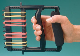 - Hand Exerciser. Anatomically designed handle is padded and contoured for a comfortable fit in the palm. The lightweight frame adjusts easily for blocking flexion and extension and permits a custom fit for different hand sizes. The unit includes four pairs of graded, color-coded latex-free rubber bands, which can be changed quickly to adjust resistance.