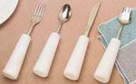 - Sure Hand Utensils, Weighted Fork. Utensils Help Maintain Your Grip. Patterson Sure Hand Utensils have soft, flexible ribbing the complete length of the handle for a comfortable, non-slip grip. The round handle makes it a natural fit for anyone with arthritis, weak grasp, CVA or neurological impairments. An extra-wide flange stabilizes the grip, and stops the hand from slipping forward. The utensil is made of high quality stainless-steel. Dishwasher safe. Latex free.