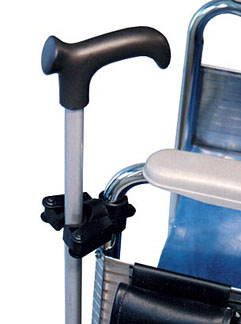 - Deluxe Cane and Crutch Holder, 1 in. diameter. Attaches to a round tube such as on a walker or wheelchair. The cane or crutch is pushed into the rubber holder which snaps around the cane to secure it firmly in place. To release, simply pull on the cane. The clamp rotates to allow proper alignment of the cane for the best grip.