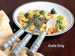 - Weighted Utensils, Knife, Serrated. Weighted Utensils Fit Special Dining Needs. These plastic weighted utensils are easy to grasp because they're shaped to fit your fingers - plastic handles are weighted for easy handling. Dishwasher safe.