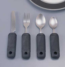 Suregrip Knife. Comfortable ribbed built-up handle helps people with weak grasp hold utensil securely. Stainless steel with rubber handle. Dishwasher safe.