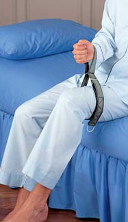 - Thigh Lifter. For independent repositioning of the leg while sitting or transferring from bed, wheelchair or car. Durable, double-stitched grey nylon taffeta loop with hook and loop closure adjusts to accommodate thigh sizes up to 22". Helpful D-ring closure for individuals with limited hand function or strength. Latex free.