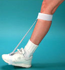 Calf-Based Toe Lifter. Maintains neutral foot position. Velstraps enable one-handed installation. One size fits all, right or left. Light gray. Latex free.