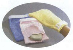Terry Cloth Wash Mitts, Without Pocket, Blue/Large. Sewn from long-wearing terry cloth. Mitt without pocket. Color-coded by size.