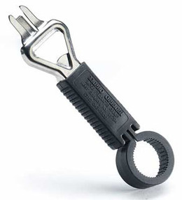 - Multi-functional tool helps open plastic and metal twist-off caps, tab-top cans and pry-off bottle caps. Made of rust-proof stainless steel and soft molded plastic on the handles for a comfortable grip. Magnet on the back of the device allows for convenient storage by hanging it on the refrigerator door. Latex-free.