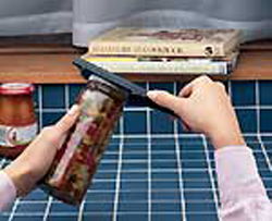 - Good Grips Jar Opener. The soft, flexible ribbing on the built-up handle of this opener is perfect for those with limited grasp. Four-inch ergonomic handle is made of a rubber-like material that bends to conform to the user's grip. Nonslip, even when wet. Opener works on lids up to 4" in diameter. Overall length is 8-1/2". Dishwasher safe up to 125-degrees F. Latex free.