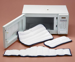 - Therabeads: When heated in a microwave oven, Therabeads release their retained moisture, providing pain-relieving therapeutic moist heat relief from stress, tension, aches and pains without chemicals, boiling water, gels or plastics. After treatment, the Therabeads recover moisture from ambient air, so they can be used indefinitely. Size: 5" x 11" (13 x 28 cm).