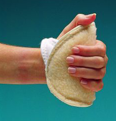 - Rolyan Palm Protector, Left, 3/pk. Helps prevent finger contractures and skin breakdown in the palm. Palm protector is pre-rolled and tacked down for simple application. Closed-cell foam lined with comfortable sherpa fabric. One size fits most adults. Latex free.