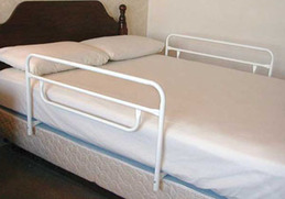 - Security Home Bed Rails, Double: Easily installs to a twin and full-sized home bed. Support tubes fit between box spring and mattress and are preinstalled to bed rails. Position up, or lower with snap buttons. 30" long. Meets state and federal guidelines. Rails are powder coated and made of steel for strength.