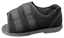 - Post-op Shoe, Mens X-Large, 12 1/2 - 14. Comfortable, dual density 3/16 in. insole. Rocker bottom for stability and more natural walking motion. PolyPro shank built into outsole for flexion control. Padded upper for reducing heel slippage. D-ring and hook and loop closures ensure easy application and removal. Latex free.