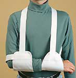 - Hemi Arm Sling. After initial fitting, user can apply independently. Feautures an adjustable strap between the forearm cuffs. O-ring on back. Secure, stable design for right or left. One size. Washable. Latex free.
