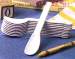 - Child's Feeding Spoons, 10/pk. Shape of these 5-1/4" spoons is excellent for feeding any child. Versatile double-ended design is ideal for children starting solid foods. The flat bowls help keep the food on the spoons and allow good lip closure. Made of durable ABS plastic with smooth, rounded edges for added safety. Dishwasher safe up to 125-degrees F. Latex free.