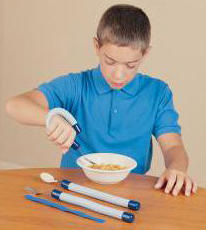 - Pediatric Flexible Spoon. This versatile utensil may be repeatedly angled or positioned. Foam handle is 10" long and 3/4" in diameeter, and can be customized to fit a child's grip and skill level. Comes with a 10" velcro strap, used to securely position the utensil. Hand wash with warm soapy water to clean. Latex free.