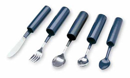 - Economy Coated Built-Up Handle Utensils. Sanitary, lightweight open-ended steel cylinders design - makes it easy to assist self-feeders. Coated with tough plastic for improved grasp. Dishwasher safe up to 180 degrees F. Handle is 4" long. Latex free. Table Spoon, 1-1/4".