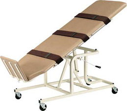 - Adult Size Manual Tilt Table. Color: Colonial Blue. Standard manual tilt table. Features Midland's durable construction and reliability. Surface area: 28"W X 78"L. Height: 33". Shipping weight: 230 lbs. Weight capacity: 300 lbs. Manual tilt tables by Midland function like electric models with one difference: vertical to horizontal tilt is achieved with an easy-to-turn crank instead of a motor. Crank is angled to provide leverage for maximum lifting efficiency. Manual operation conserves energy and costs less to operate than electric tilt tables. All manual tables feature: Three positioning straps for added security when raising clients. Four locking casters to permit mobility. Removable stainless steel footboard to provide client comfort and add vertical positioning support. Optional wooden tray. Latex free.
