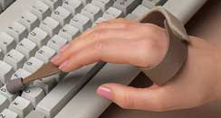 - Slip-On Keyboard Aid. The rubber tip of this aid strikes the typewriter or computer keys - helpful if you have a limited grasp. Rubber won't slip off keys. Easily slips on and off; tightens with a Velcro strap. One size fits all. Latex free.