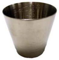 Stainless Steel Graduated Measure Cup. Dimensions: 2 1/8" x 2". Capacity: 2 oz.