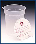 - Specimen Containers w/Pour Spout, Non-Sterile, Clear Polystyrene. A unique inner-cap thread design to ensure leak resistance when the cap is properly tightened on screw top lid. Capacity 6.5 oz/190 cc.